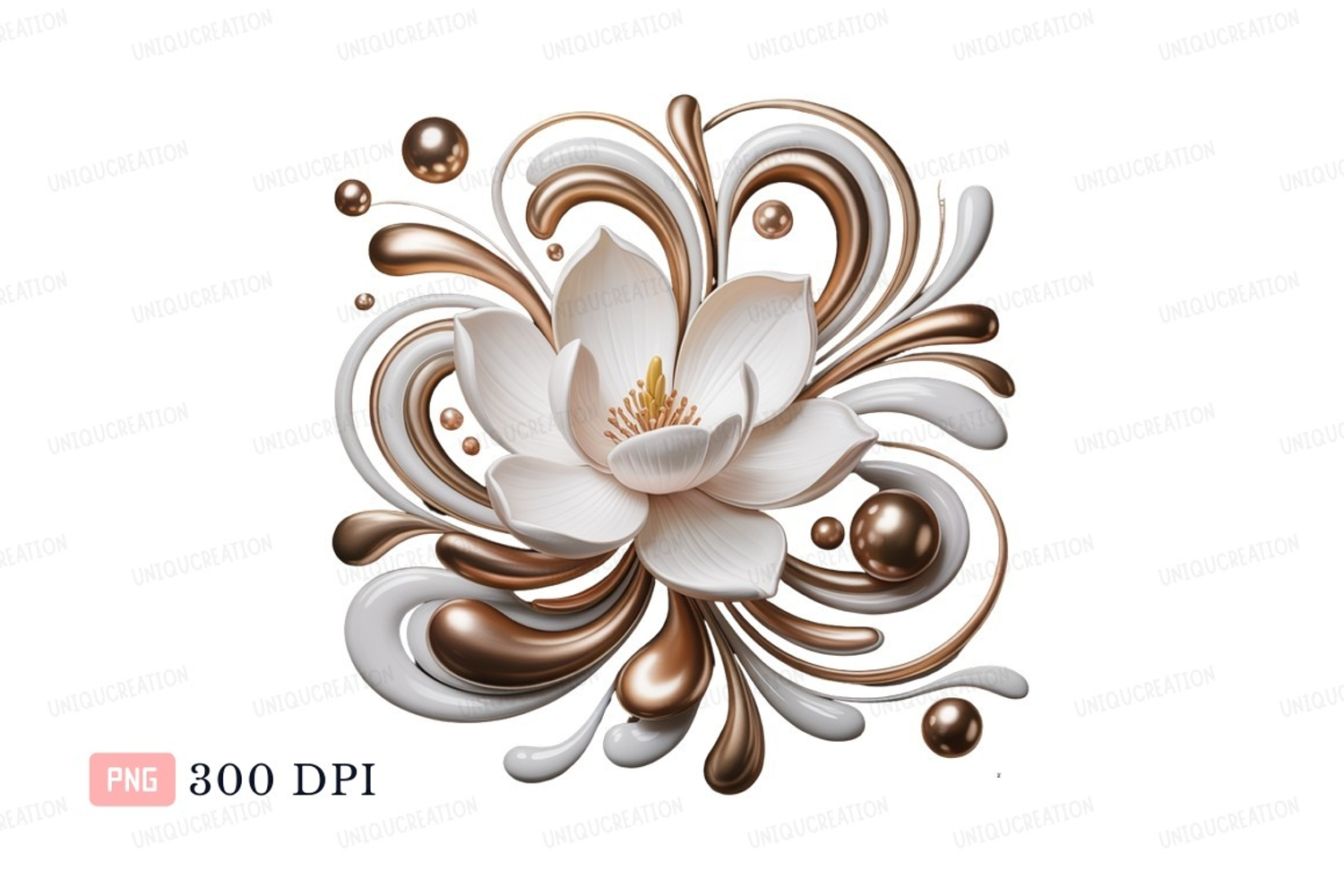 Decorative Swirls Elegant Gold Flower Abstract Bloom White Petals Luxurious