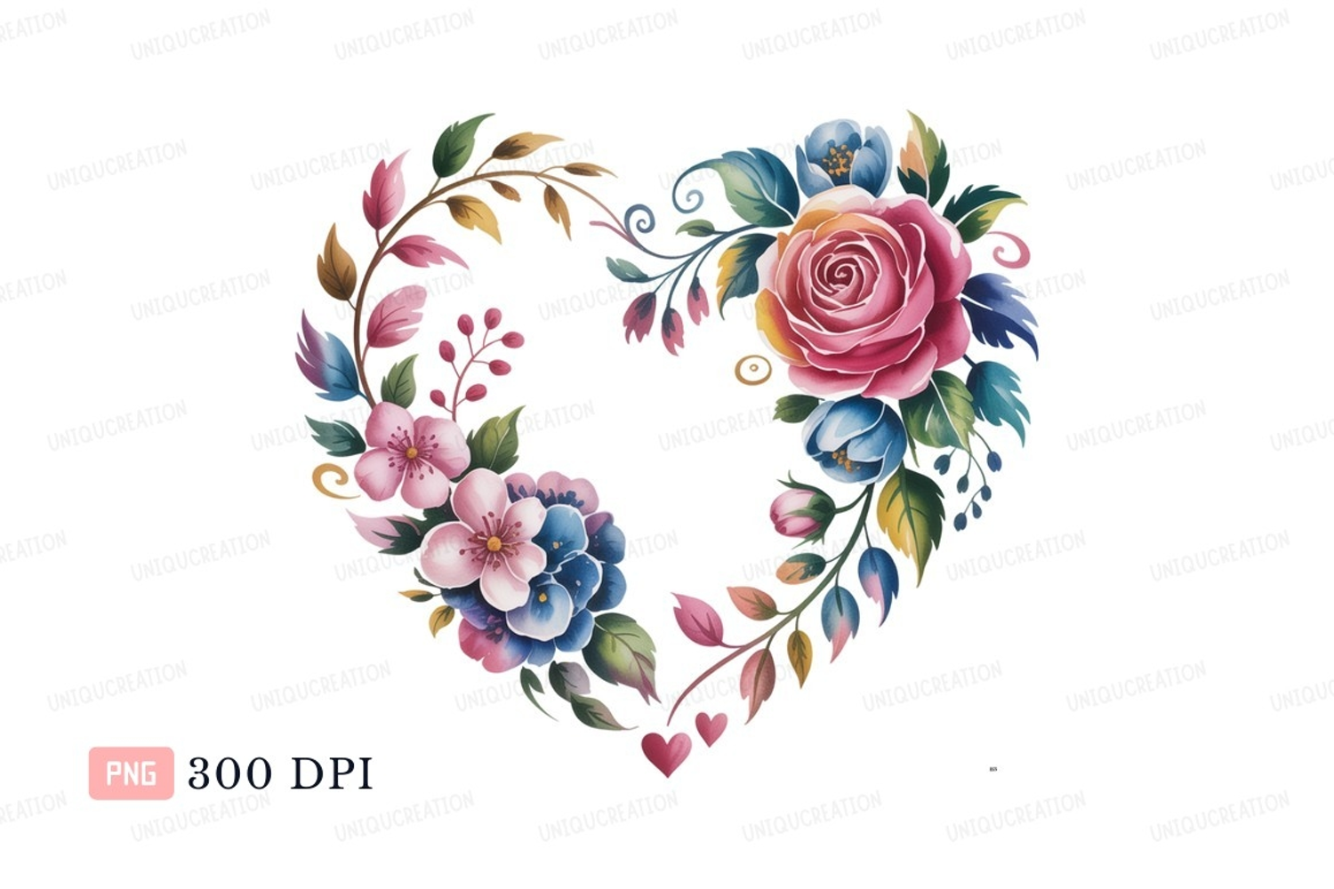 Pink Green Floral Flowers Heart Leaves Wreath Rose Blue Yellow