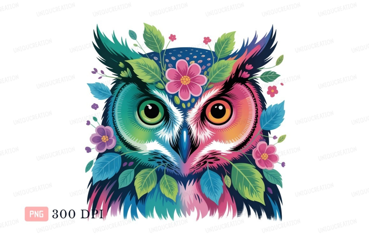Similar Design Products to Colorful owl with flowers and leaves nature