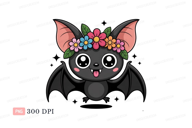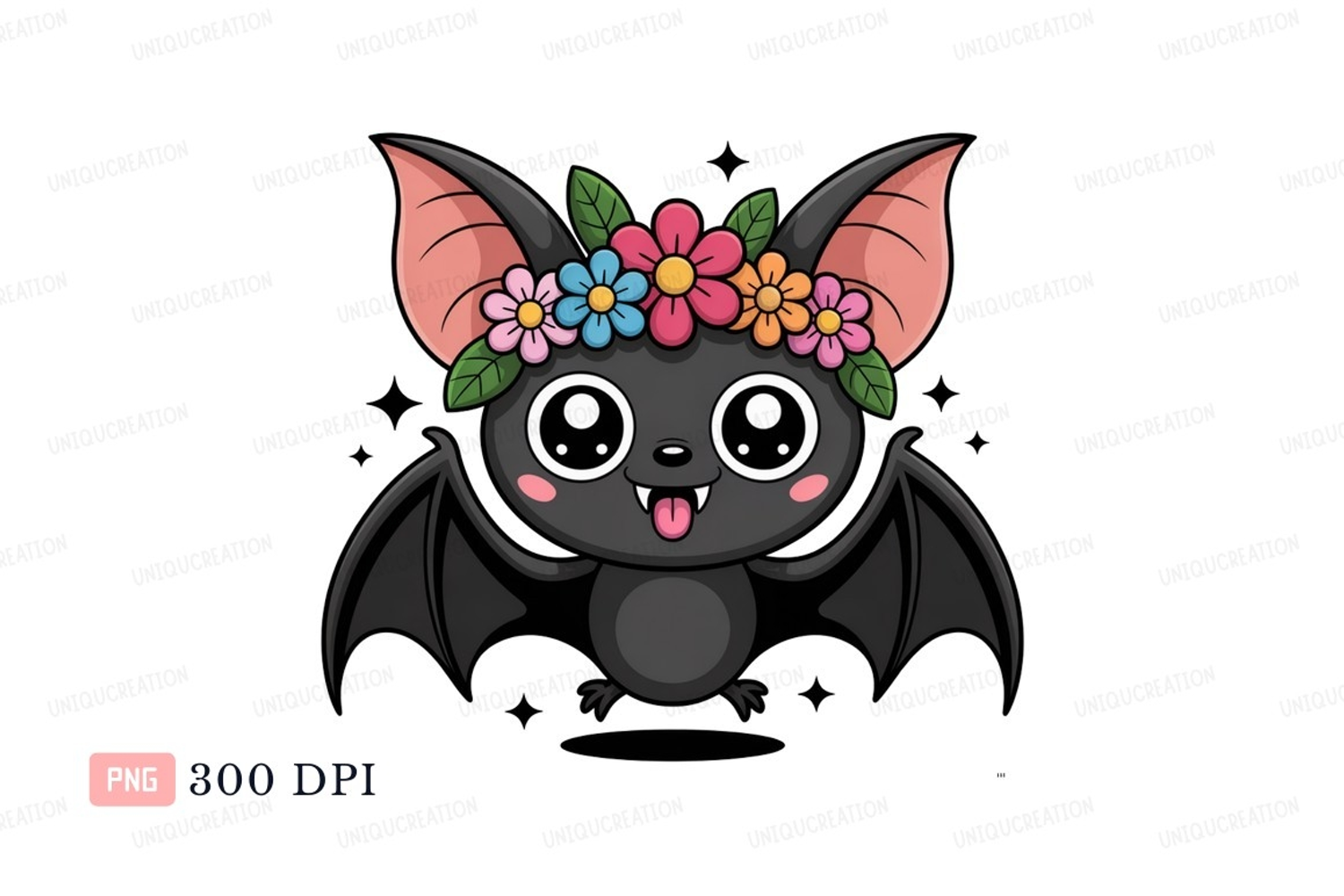 Cartoon Black Cute Pink Green Flower Crown Orange Blue Bat
