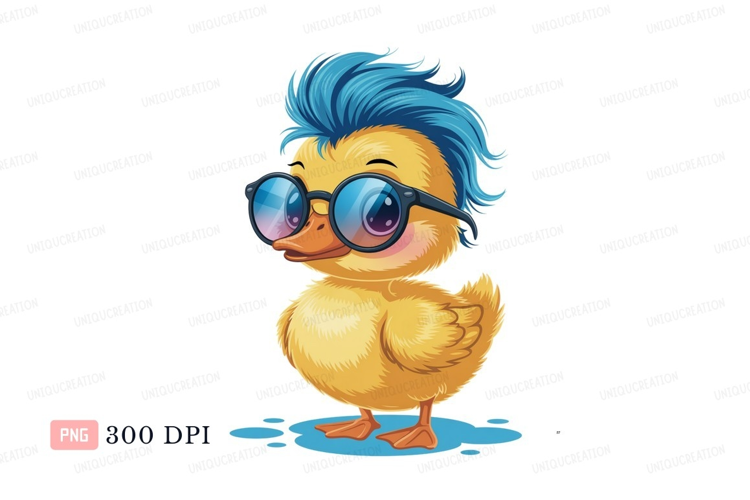 Yellow duckling blue hair glasses image example image 1