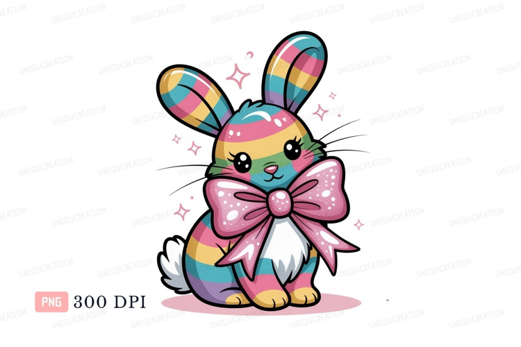 Similar Design Products to Colorful striped bunny with pink bow rabbit