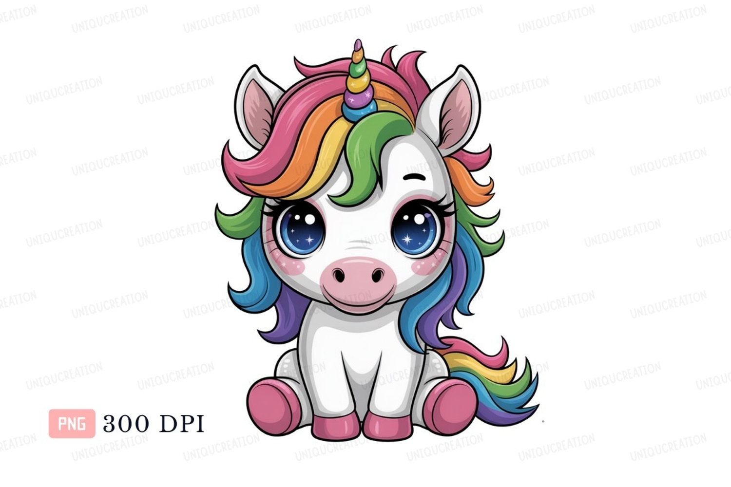 Cartoon Fantasy Cute Pink Horn Unicorn White Rainbow Eyes Mane