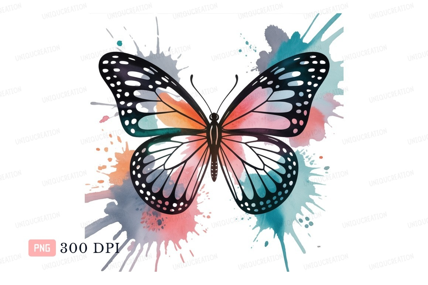 Paint Watercolor Black Pink Splash Abstract Orange Butterfly Insect Teal