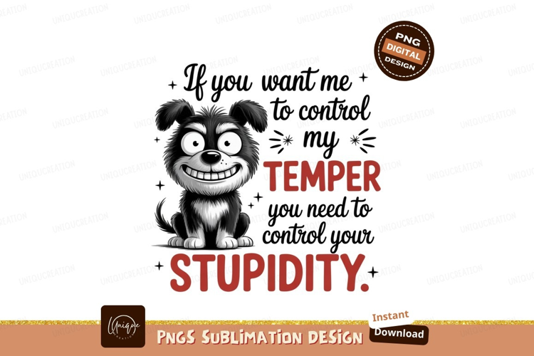 Similar Design Products to Grinning dog with temper stupidity text cartoon black