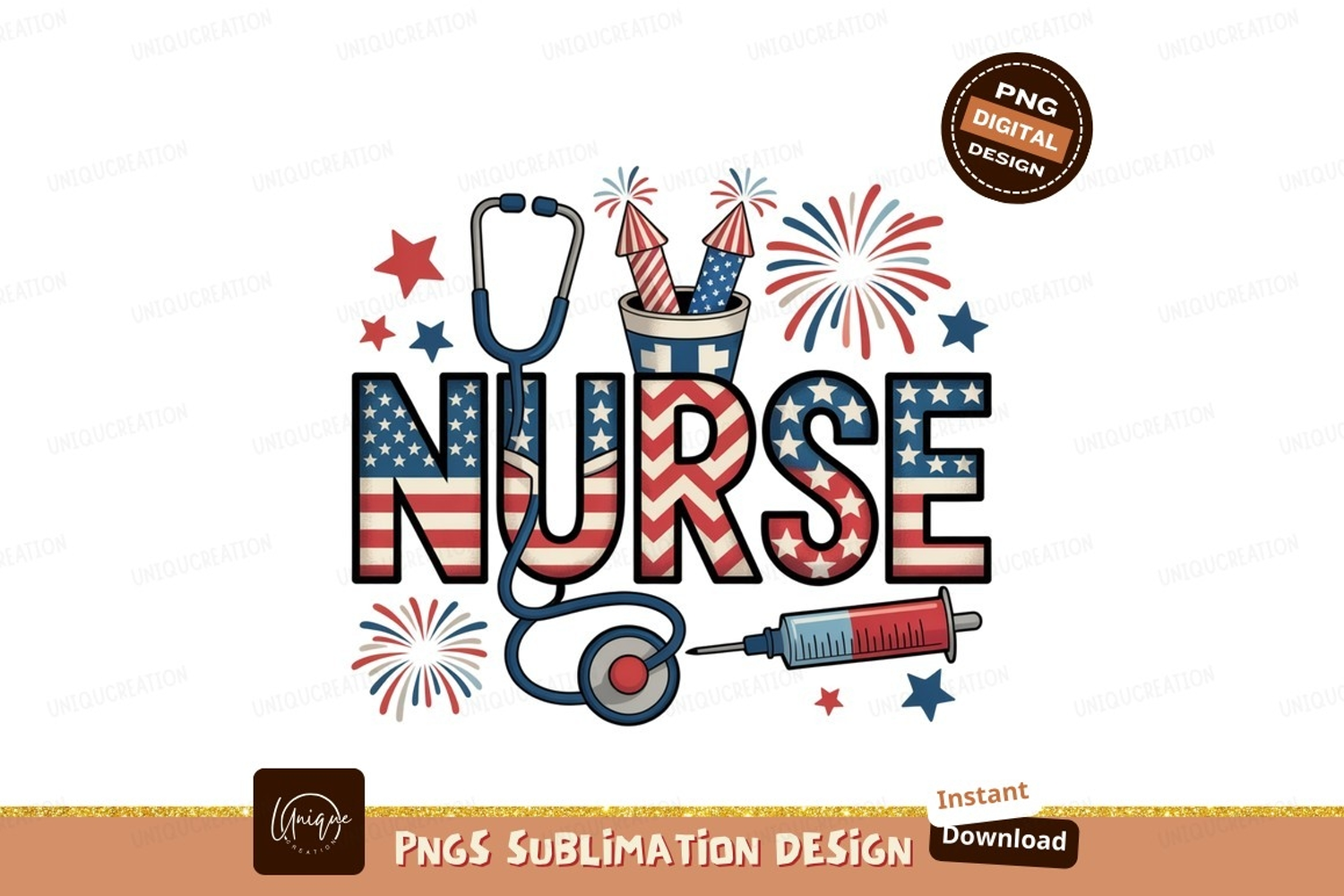 Patriotic nurse medical celebration stethoscope syringe example image 1