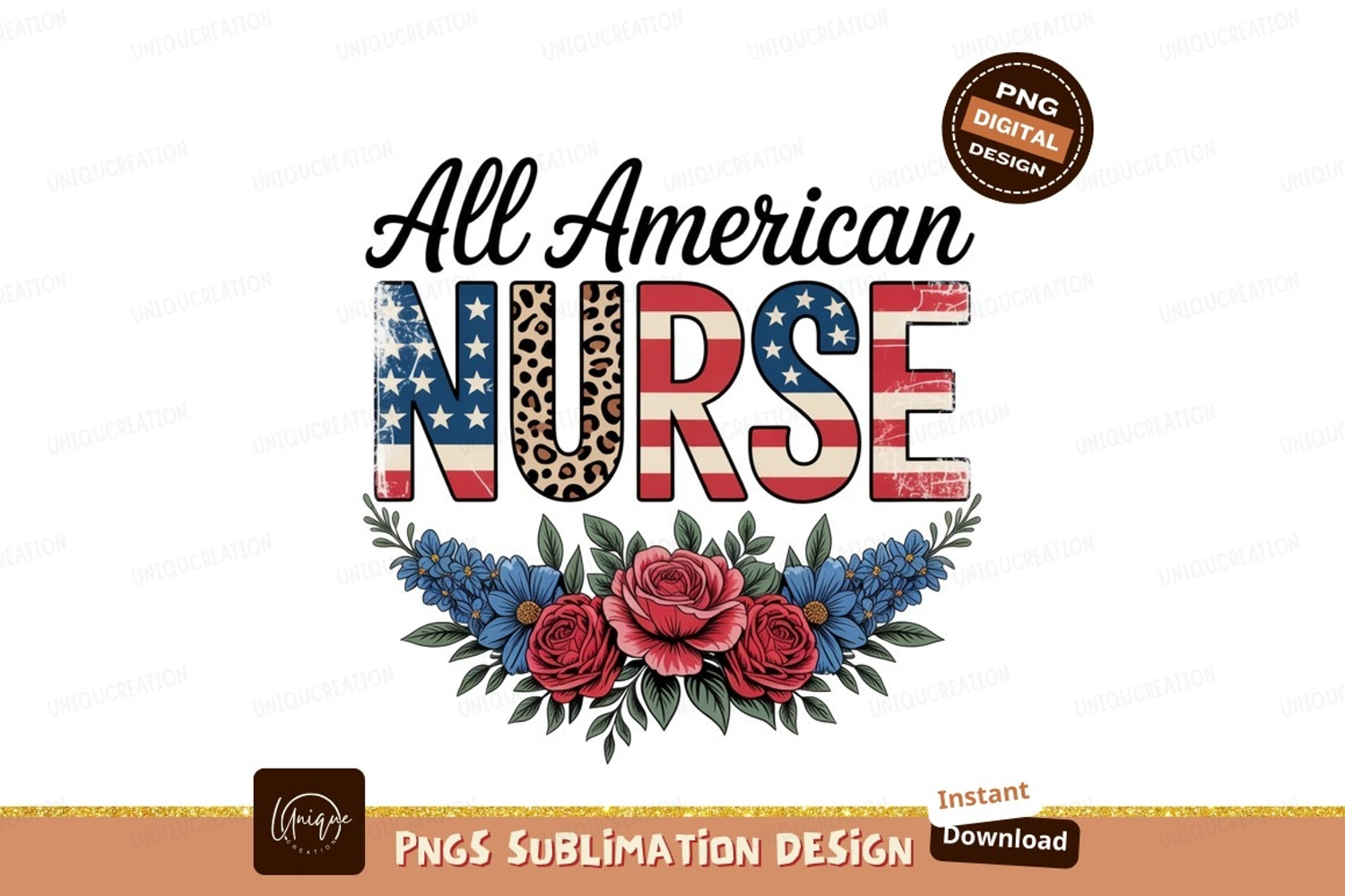 American Flowers Blue Nurse White Red Stripes Fireworks Patriotic Stars
