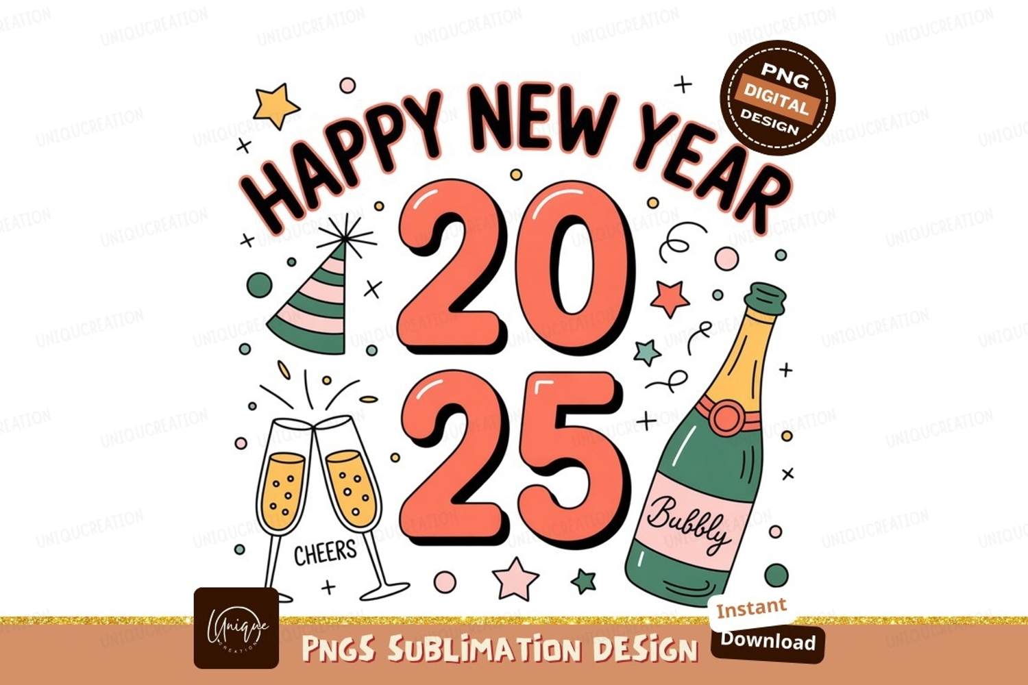 Format: Title: Happy New Year Celebration bubbly champagne example image 1