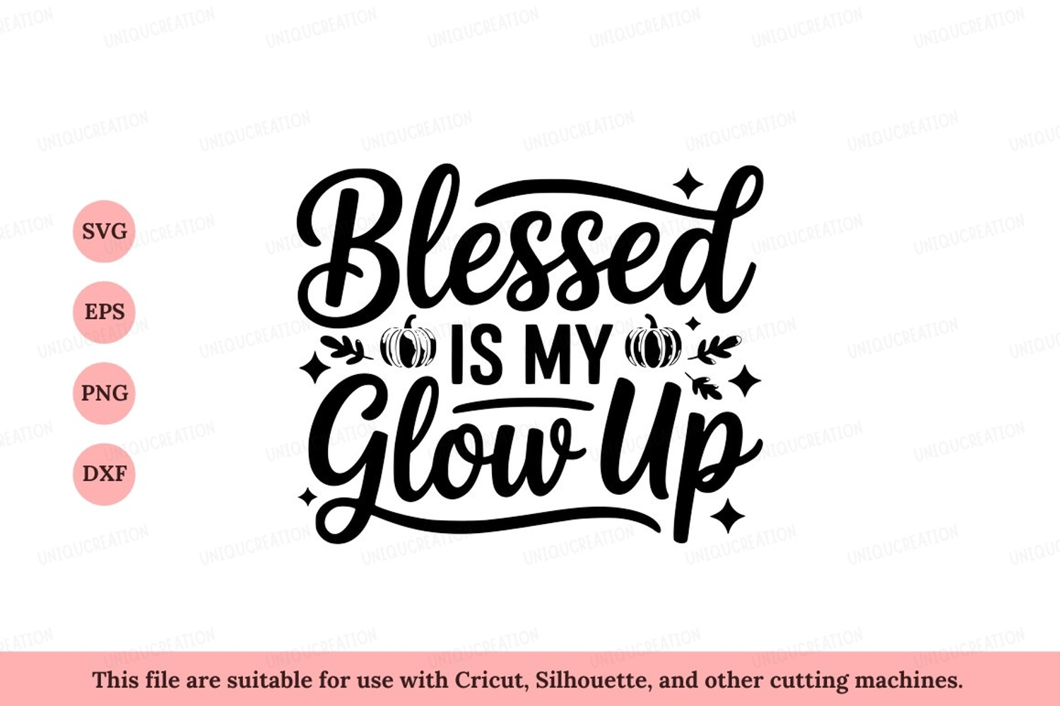 Text Graphic Autumn Fall Leaves Blessed Pumpkin Glow Up Stars