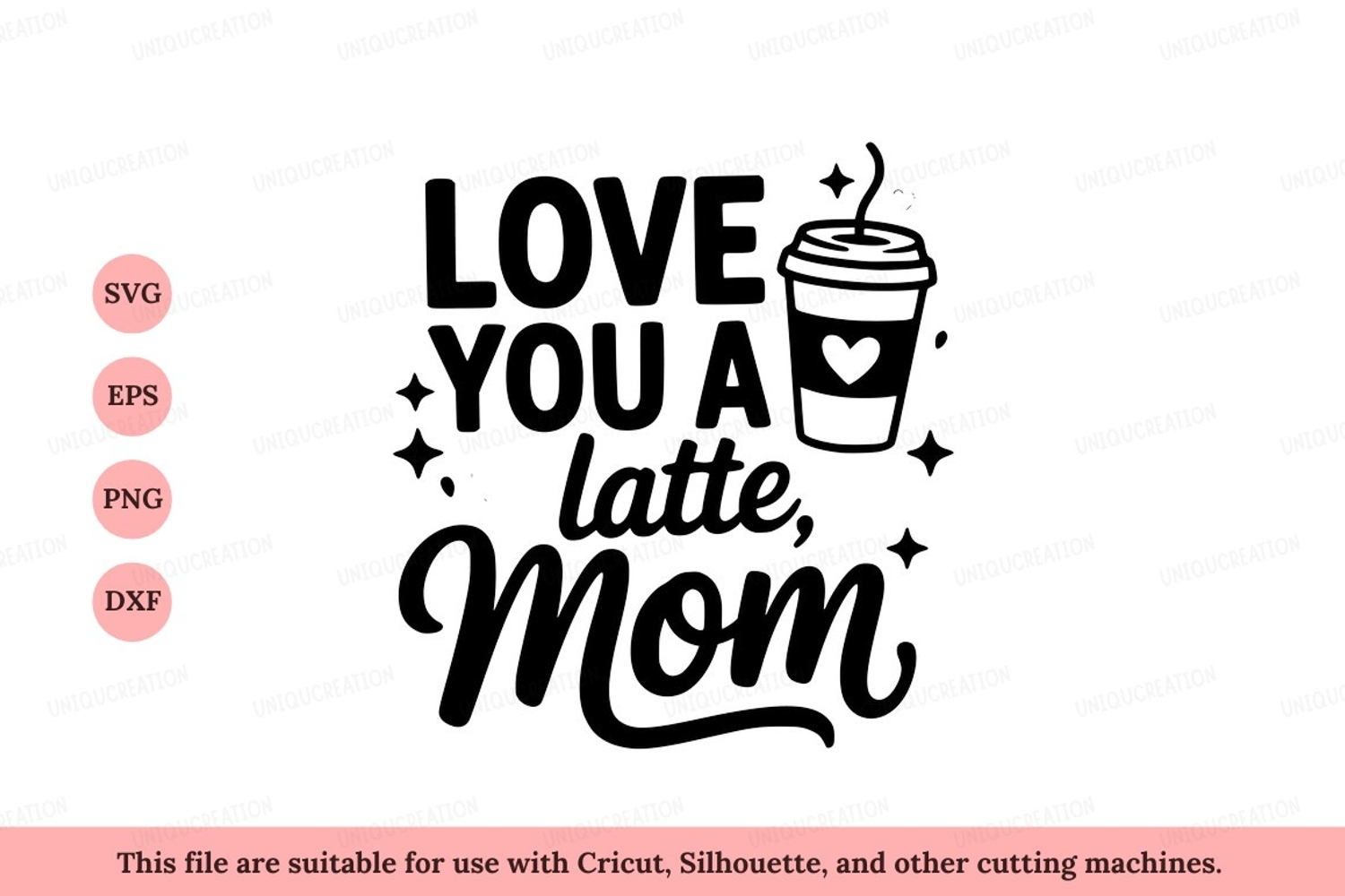 Lettering Text Love Coffee Graphic Heart Stars Cup Mom Latte