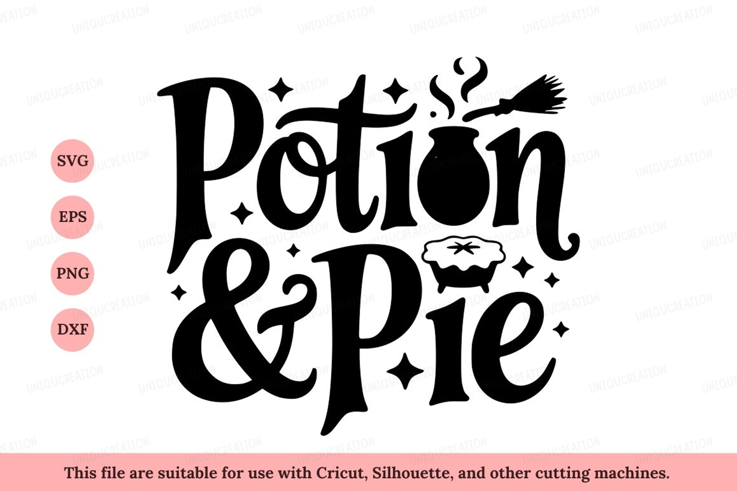 Similar Design Products to Potion and pie lettering with witch elements broom