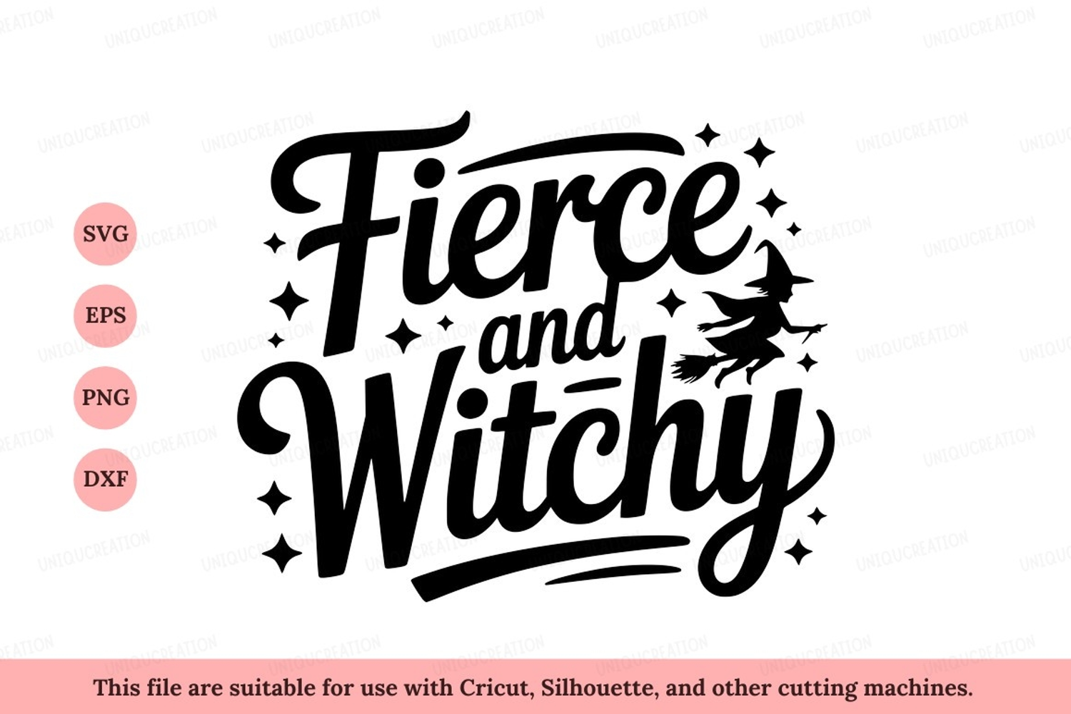 Similar Design Products to Fierce witchy text and silhouette flying broom