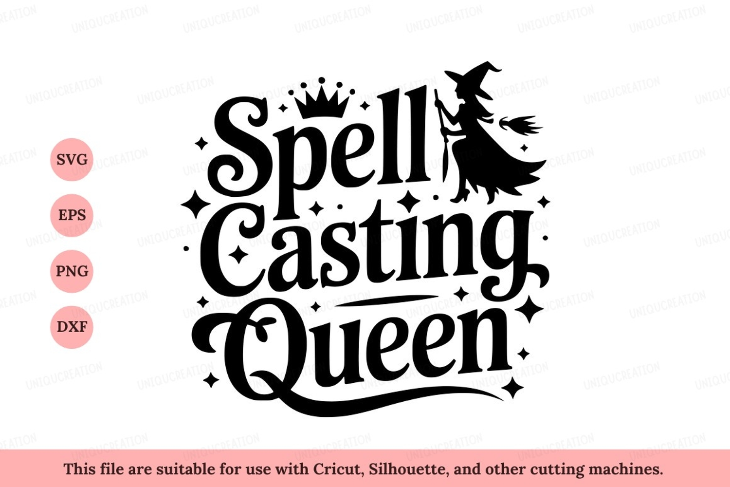 Fantasy Black Silhouette Magic Witch Crown Broom Spell Casting Queen