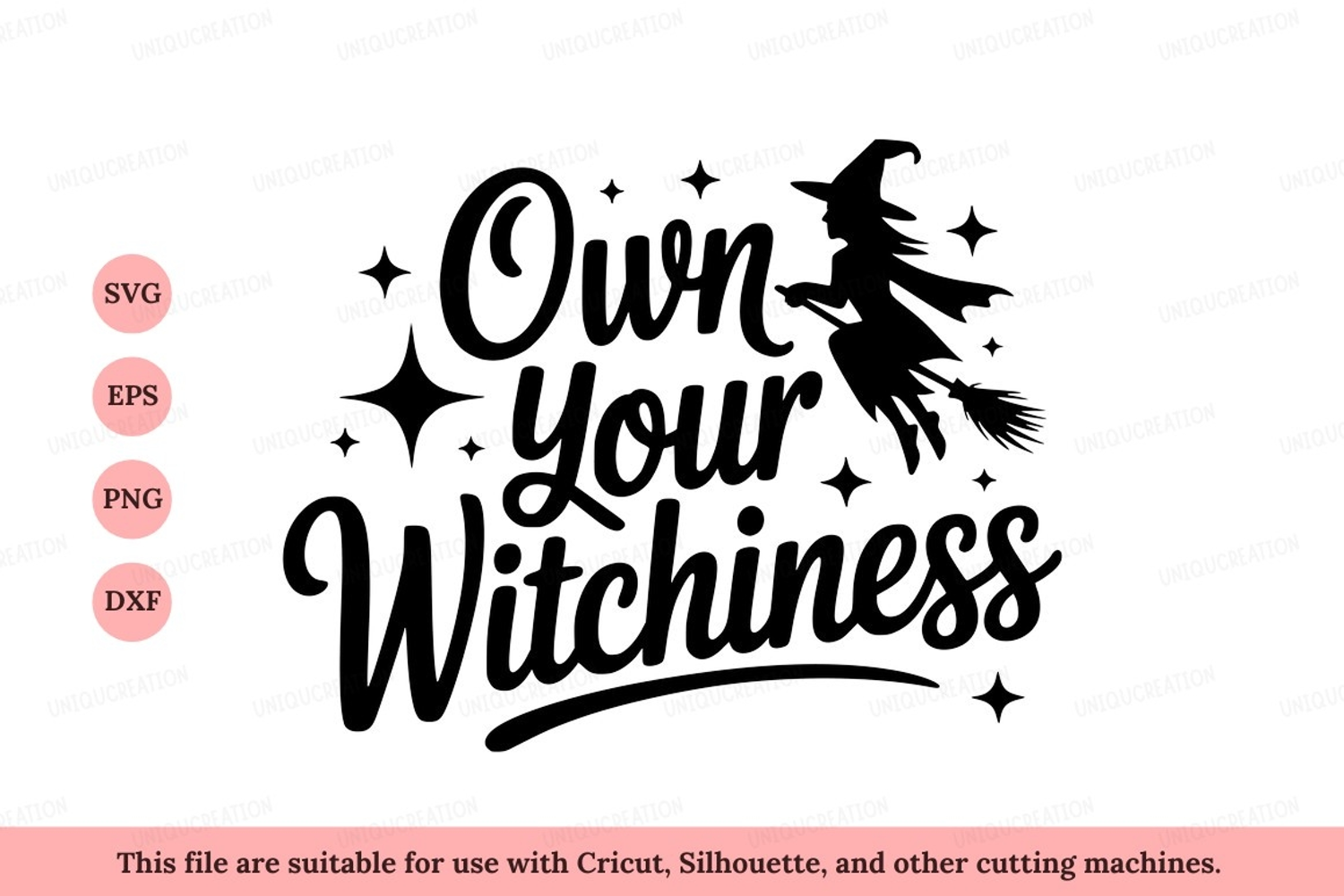 Text Halloween Black Silhouette Magic Witch Hat Broom Flying Stars