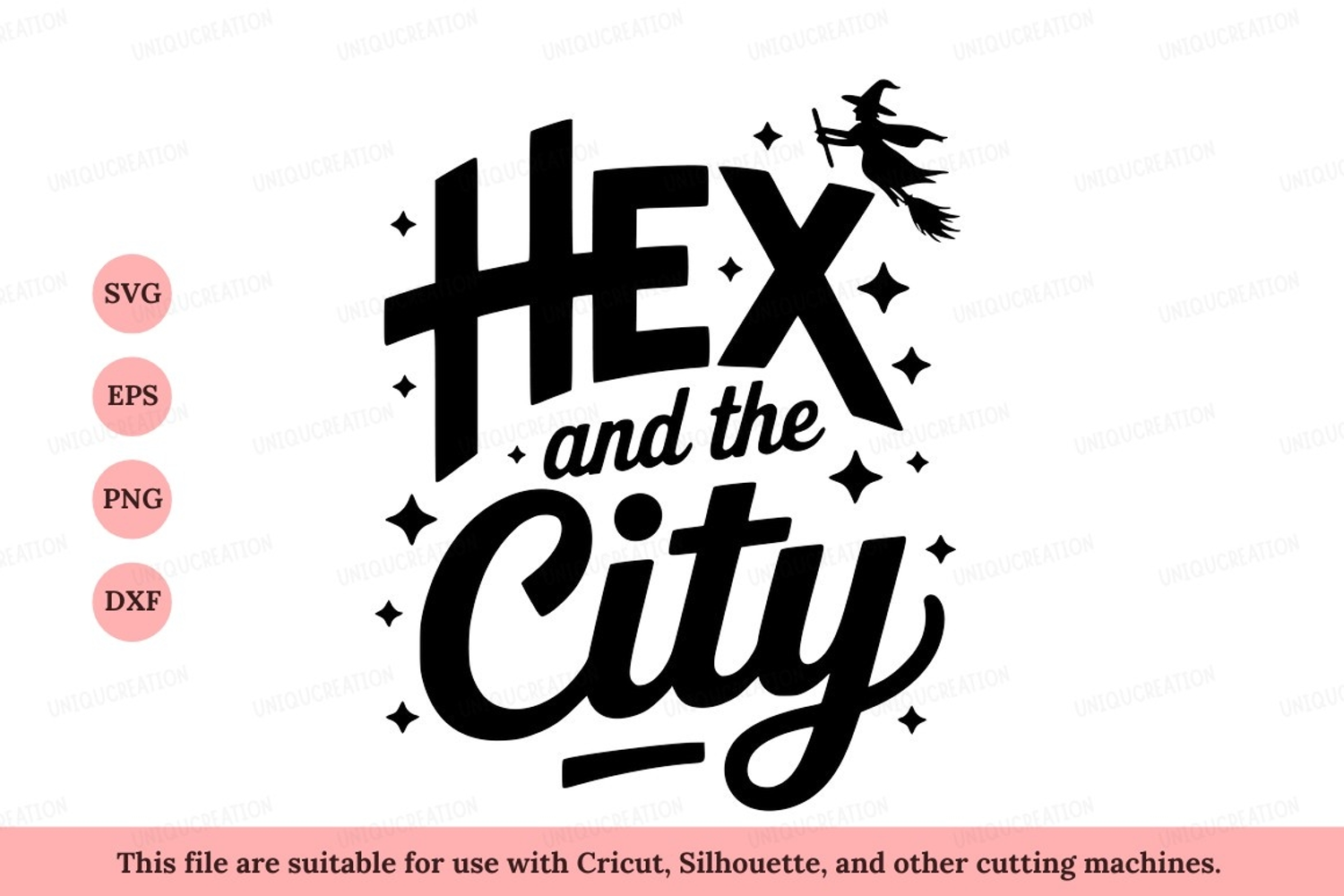 Text Black Graphic Silhouette Witch City Broom Flying Stars Hex