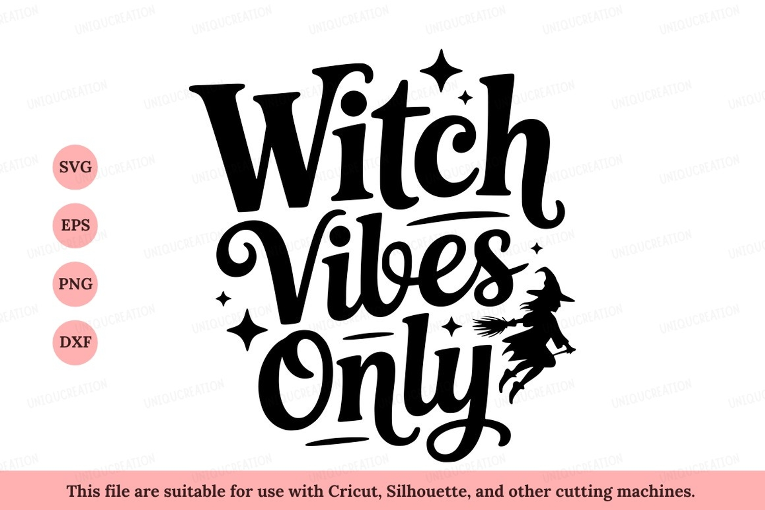 Halloween Silhouette Magic Witch Spooky Hat Broom Stars Vibes Only