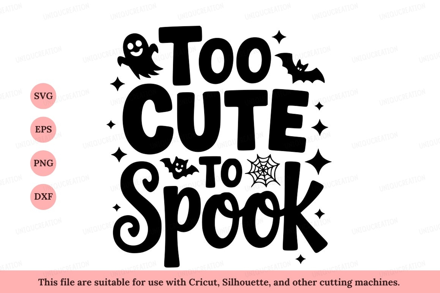 Text Halloween Black Cute Bat Spooky Ghost White Stars Spiderweb