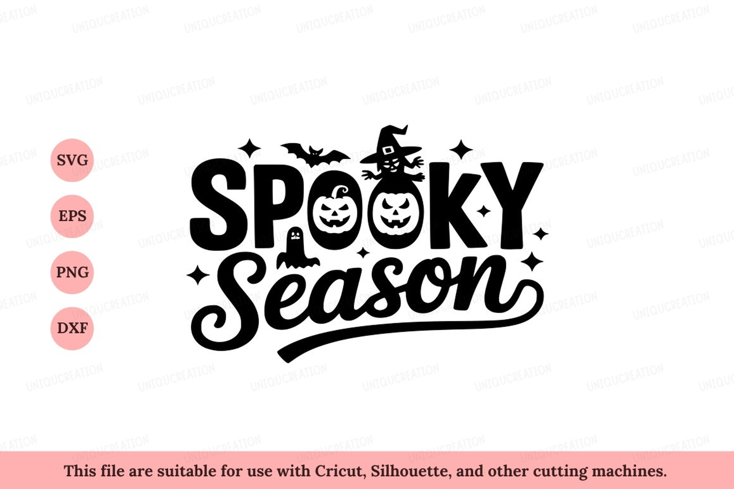 Spooky Halloween season lettering with pumpkins bats and gho example image 1