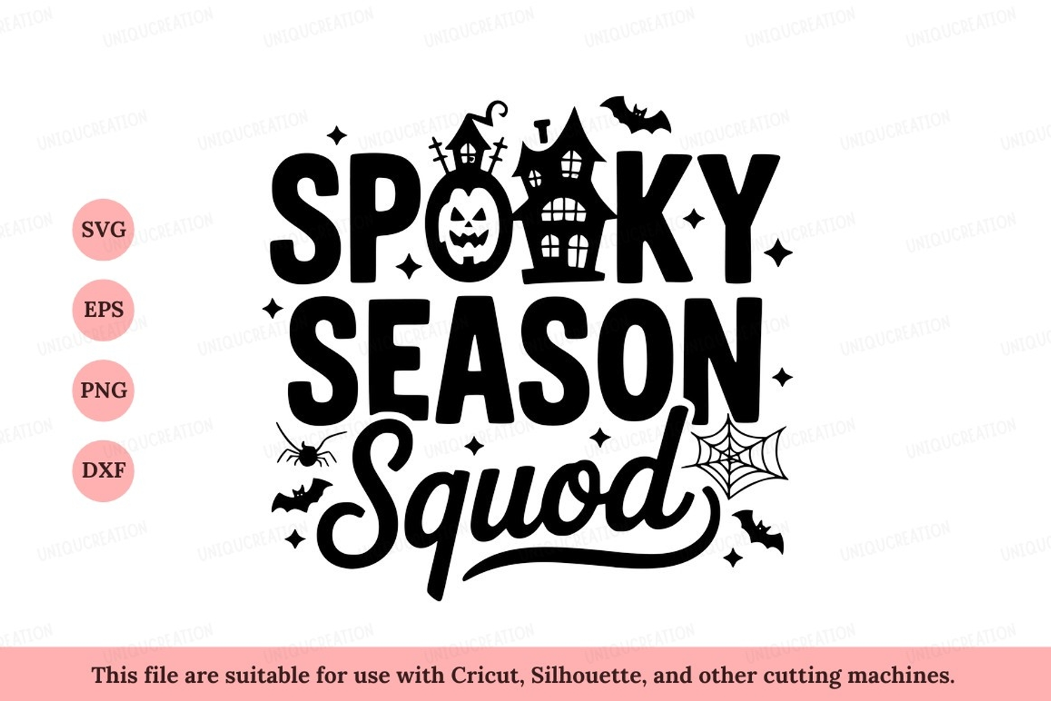 Halloween Black Spooky Spider Pumpkin Season House Cobweb Bats Squad