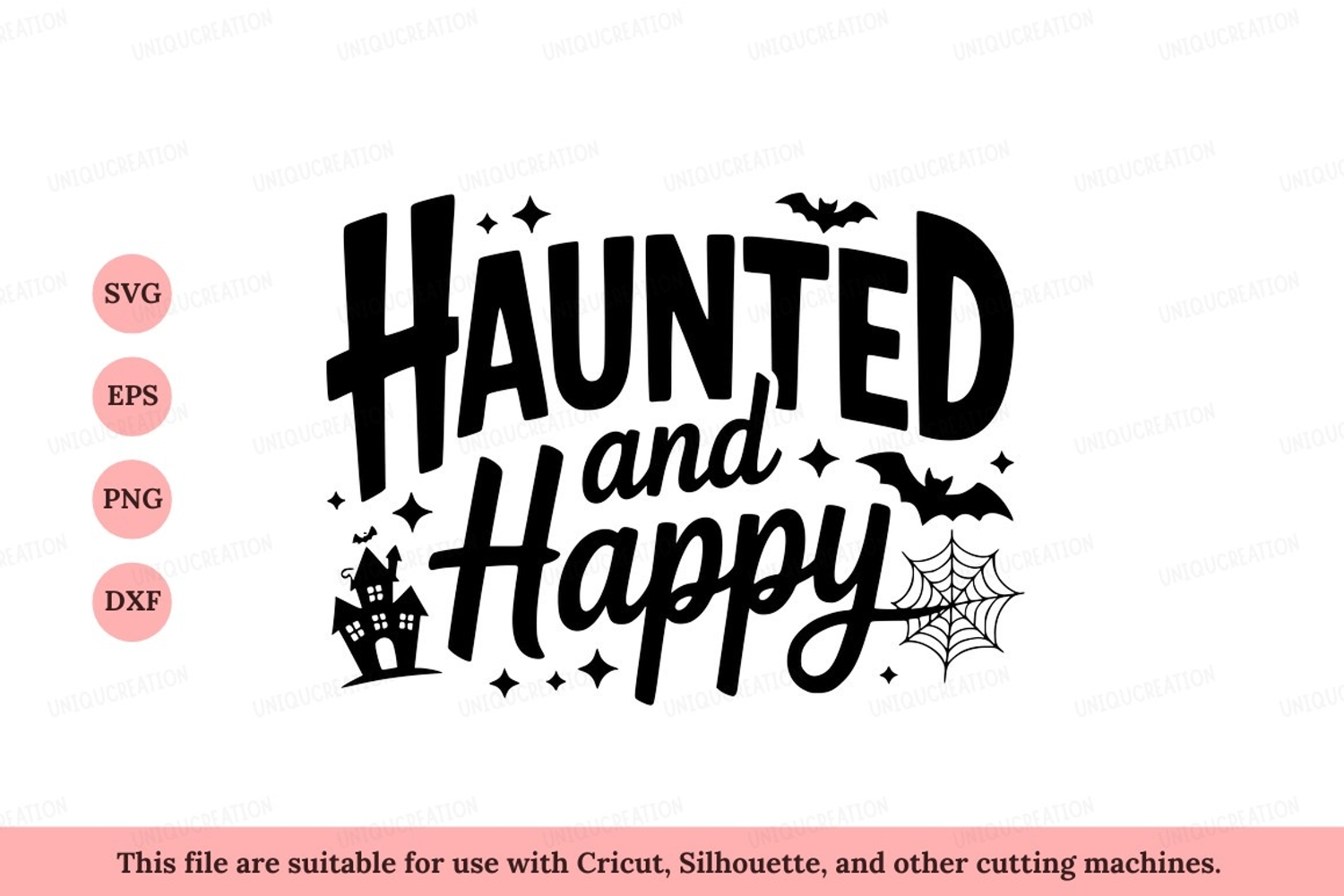 Text Halloween Black Happy White House Stars Haunted Bats Spiderweb