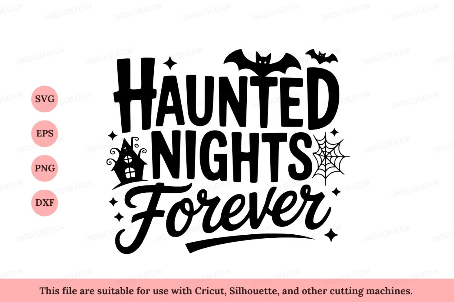 Text Halloween Design House Stars Haunted Bats Forever Nights Spiderweb
