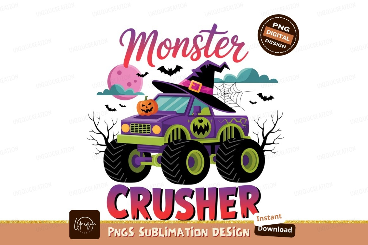 Purple monster truck with pumpkin and witch hat green example image 1
