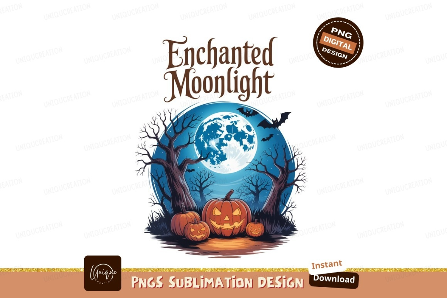 Enchanted Moonlight Halloween Scene pumpkins night example image 1