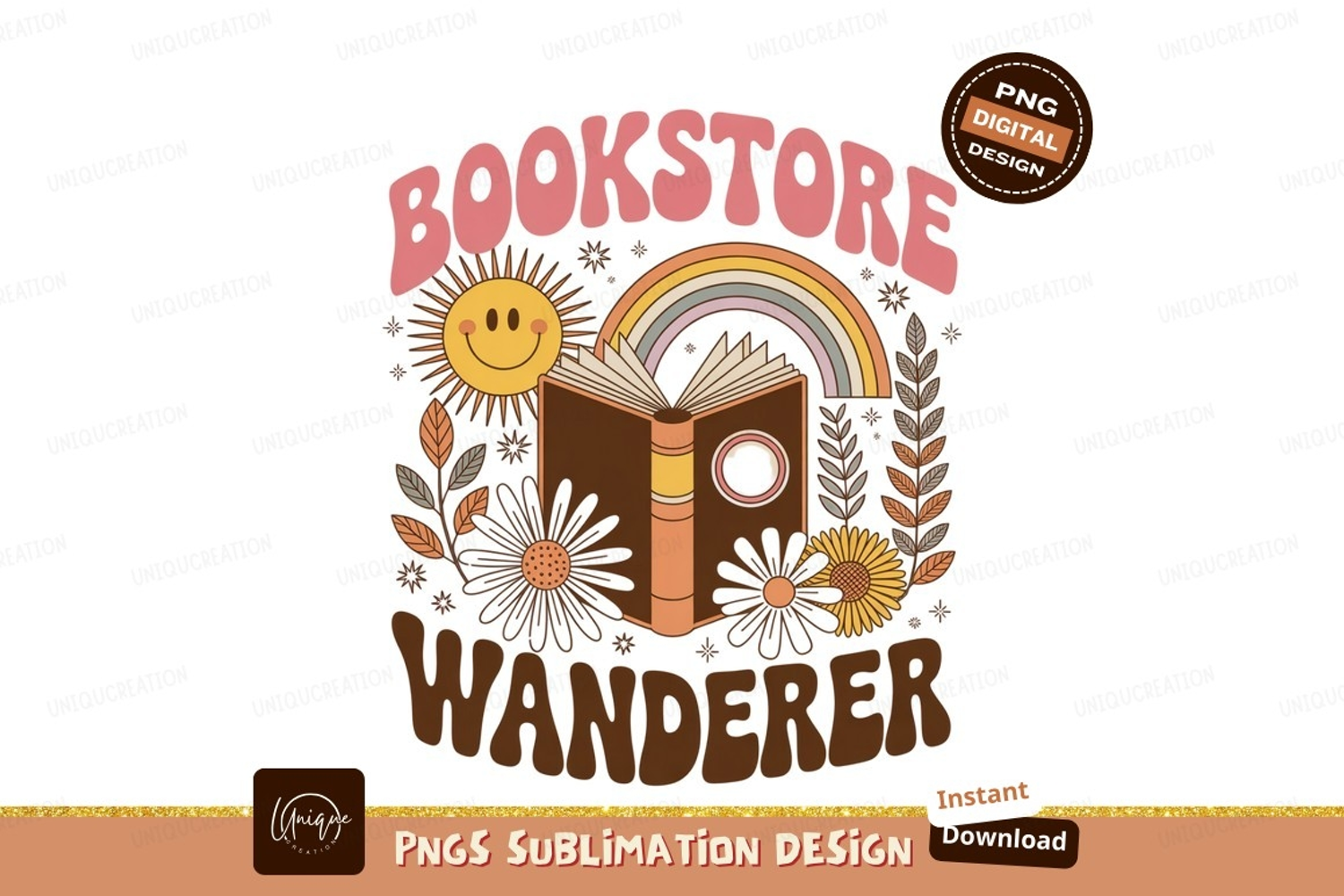 Retro Book Sun Flowers Graphic Leaves Rainbow Sublimation Spices Frappe
