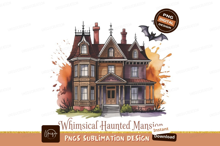 Illustration Watercolor Victorian Halloween Ornate Spooky Bats Mansion Frappe Sunflowers