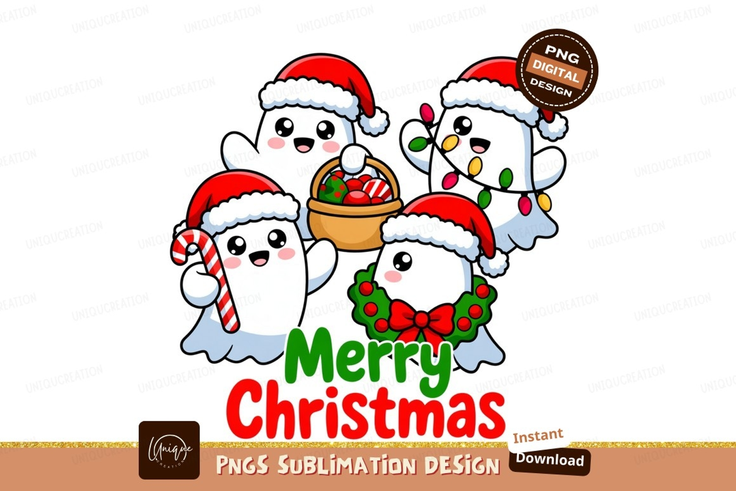 Festive sheep wearing santa hats and christmas decorations example image 1