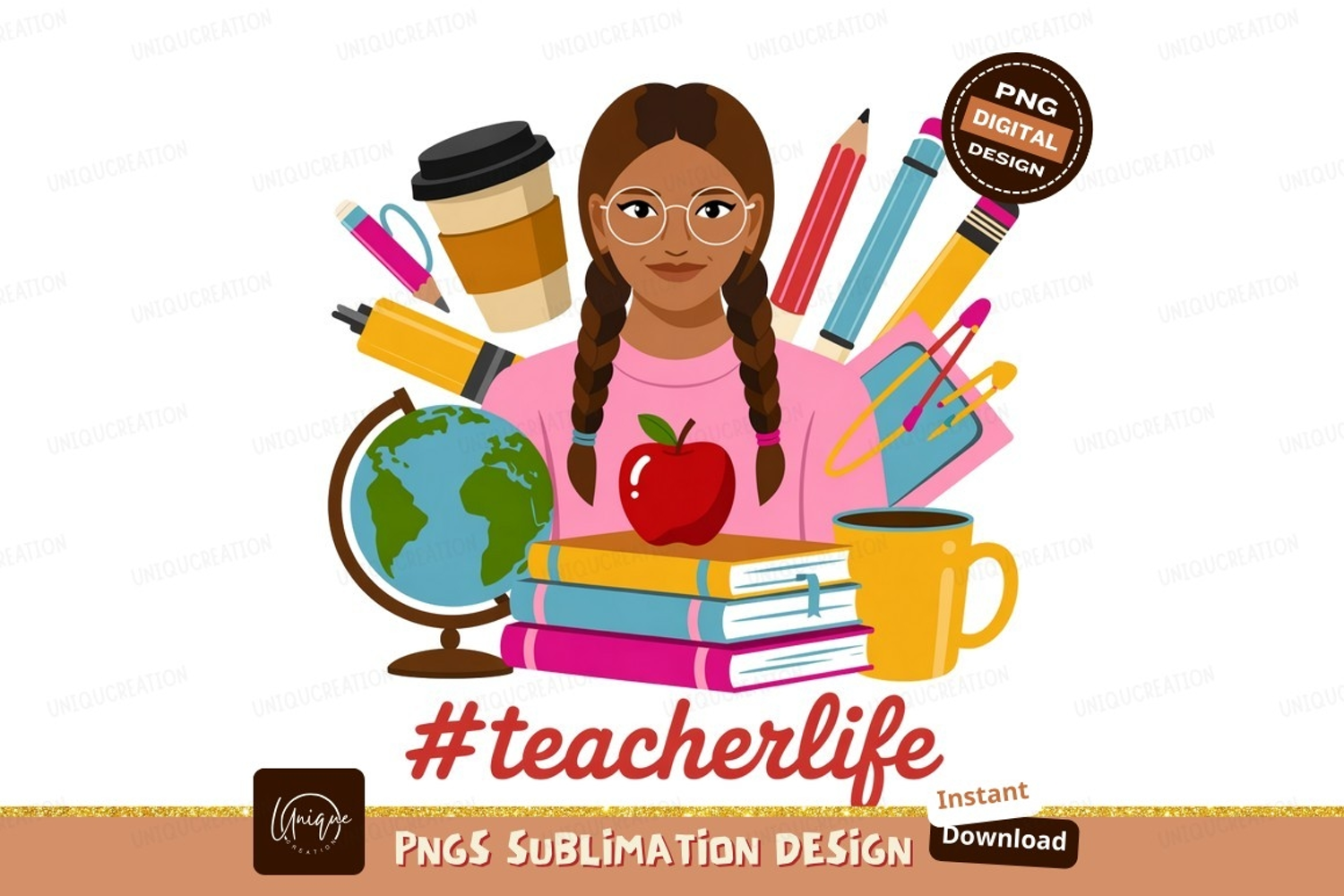 Similar Design Products to Girl with school supplies and apple glasses braids