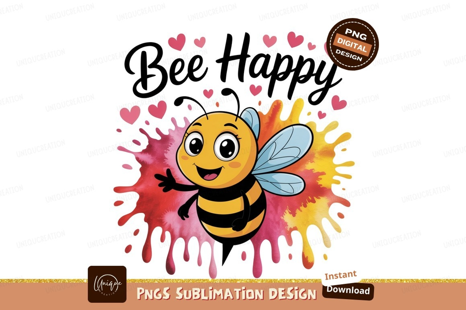 Similar Design Products to Happy bee pink hearts watercolor splash yellow