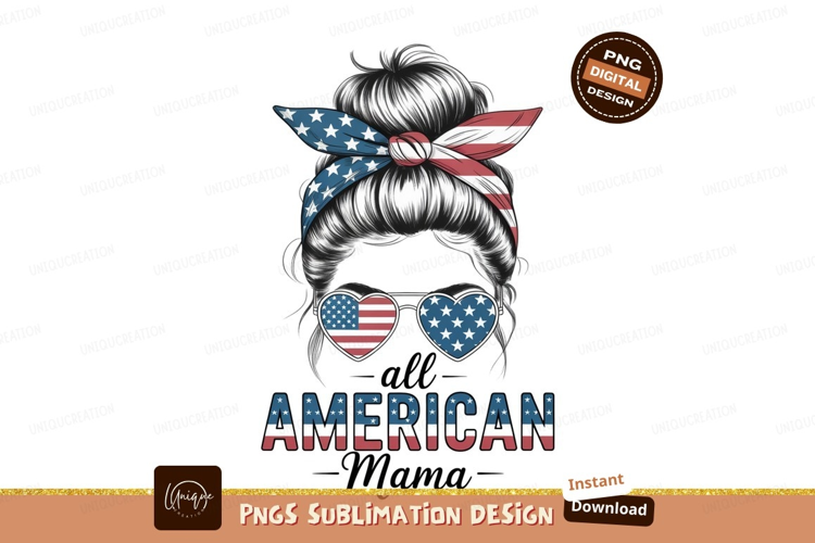 Messy Bun American Mama Patriotic Heart Glasses image example image 1