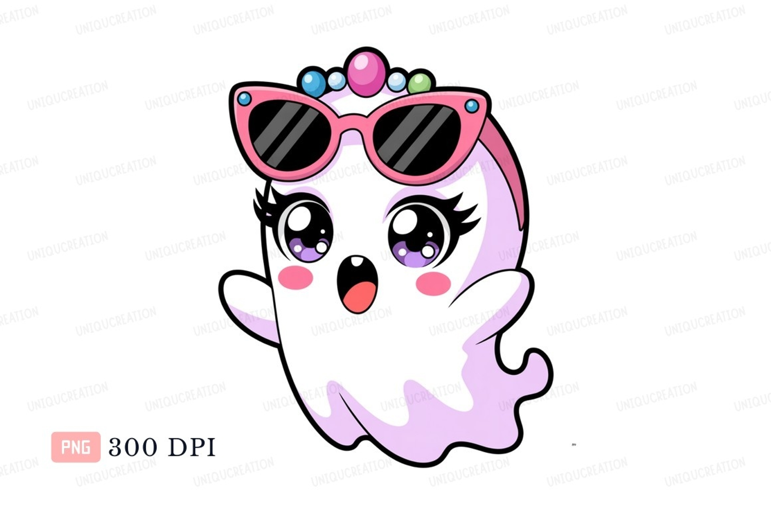 Cute ghost wearing sunglasses and tiara cartoon example image 1