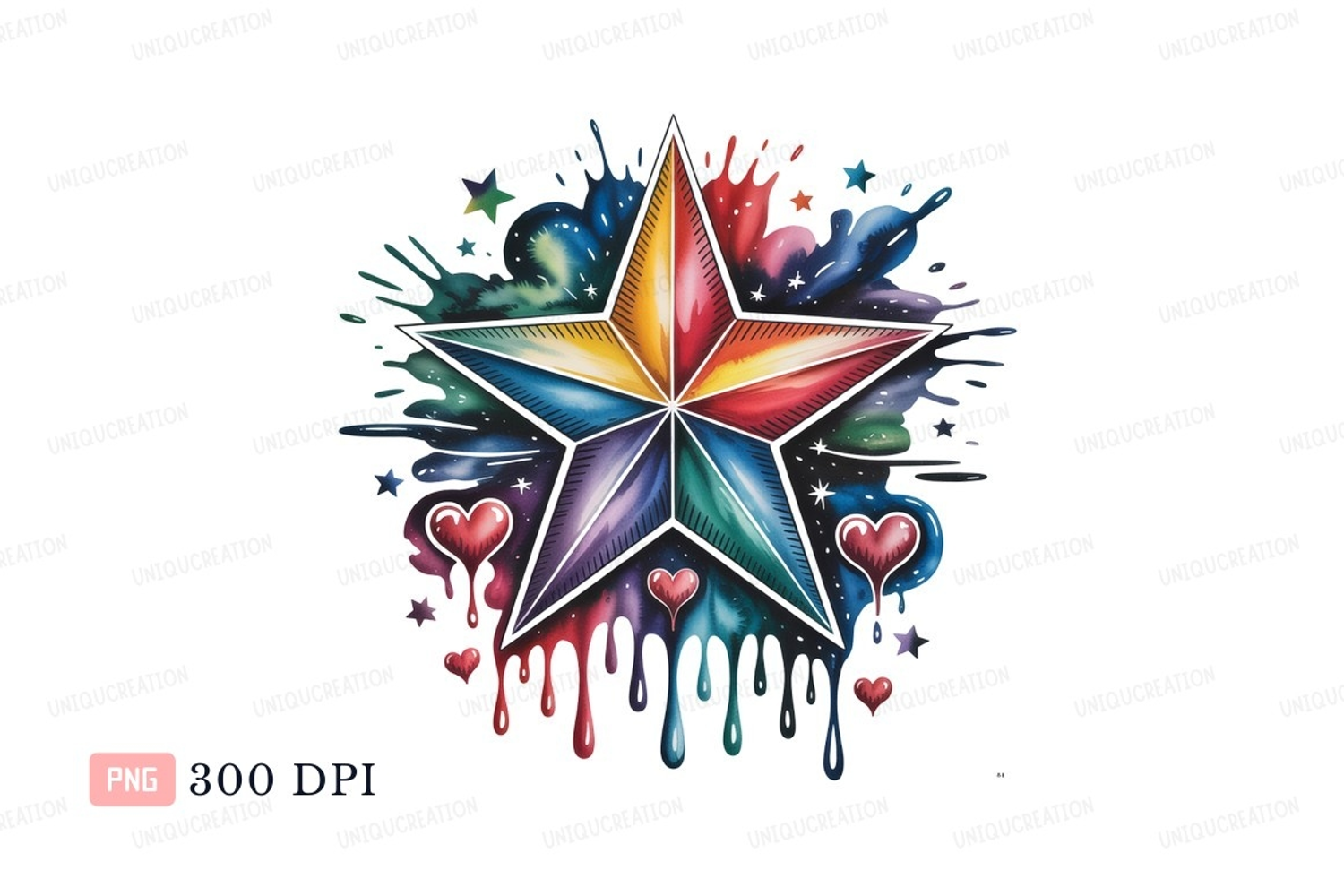 Paint Hearts Colorful Splash Abstract Cosmic Space Star Rainbow Dripping