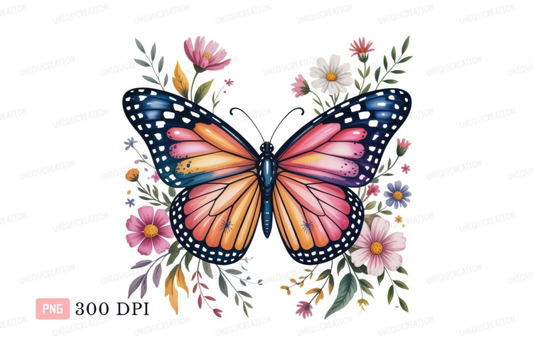 Similar Design Products to Monarch butterfly surrounded by colorful flowers orange