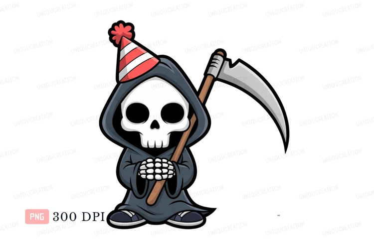 Character Cartoon Party Skull Celebration Spooky Hat Grim Reaper Scythe