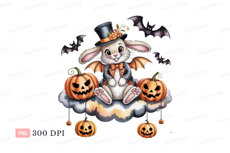 Halloween bunny with pumpkins and bats rabbit jackolantern example image 1