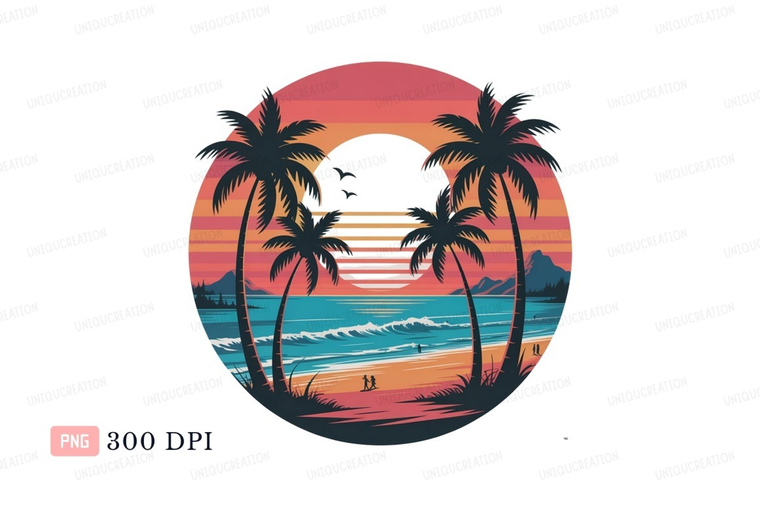 Similar Design Products to Sunset beach palm trees ocean waves palms