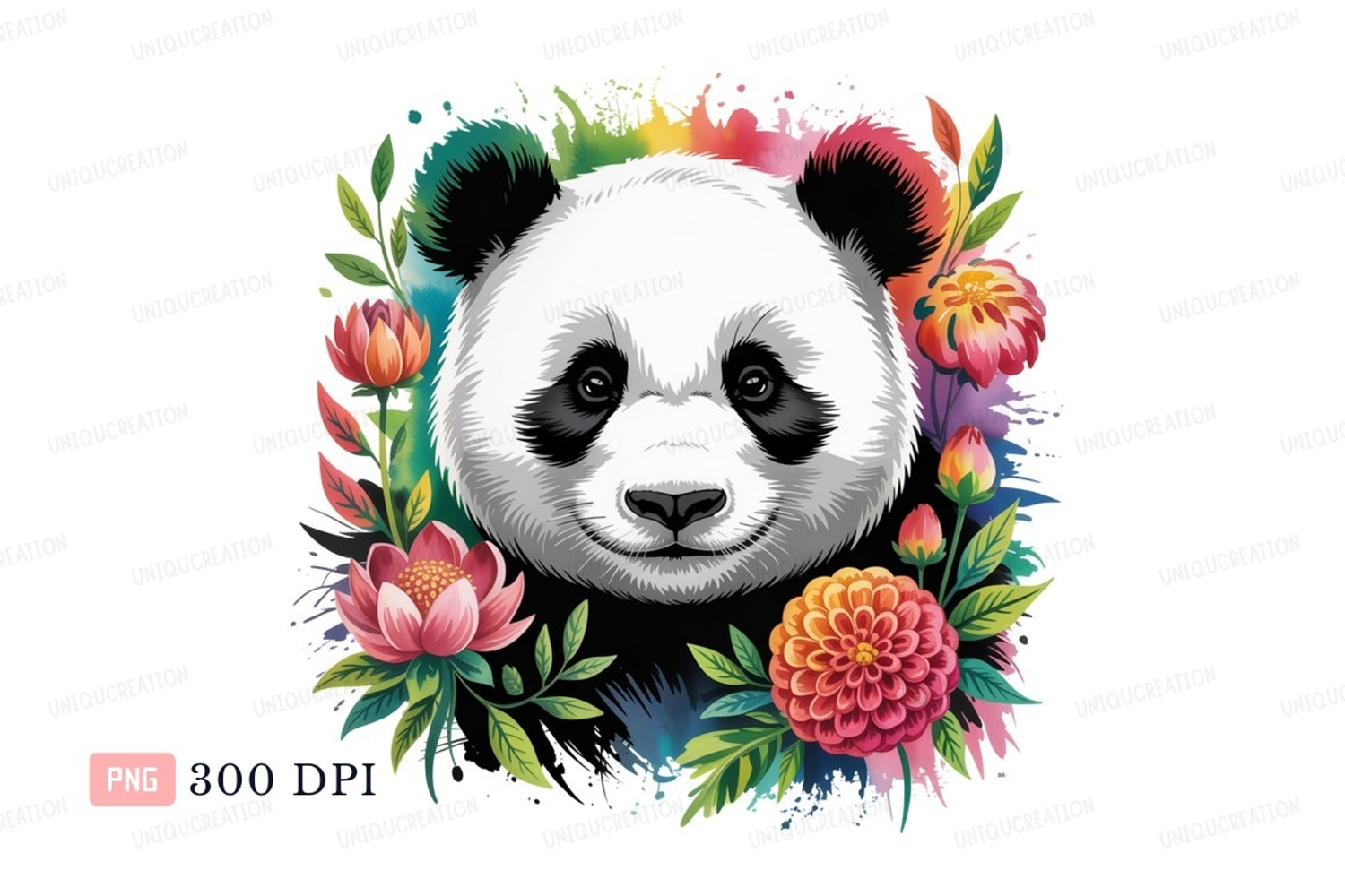 Art Black Pink Colorful Floral Orange Yellow Face Panda White