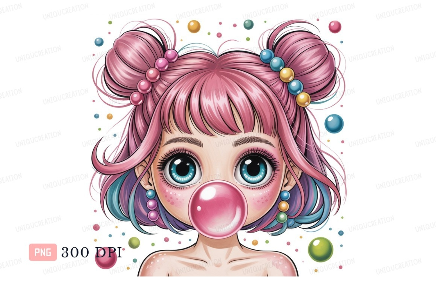 Cartoon Playful Cute Pink Colorful Girl Blue Hair Eyes Bubblegum