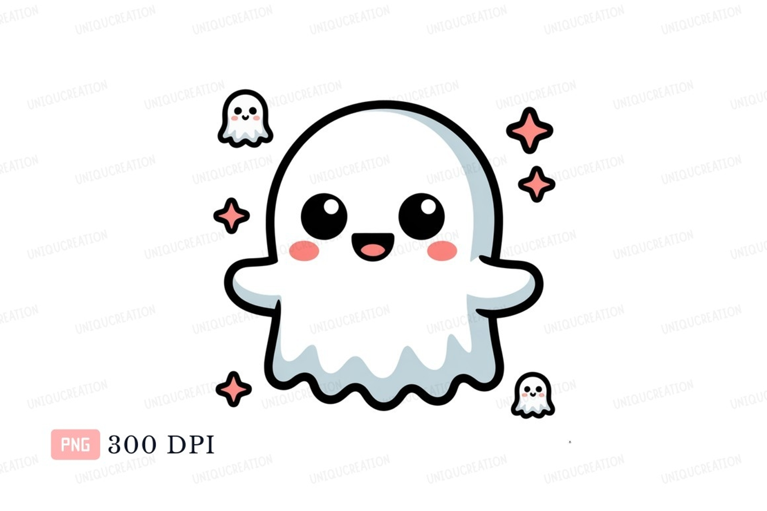 Cute ghost with stars and sparkles spooky halloween example image 1