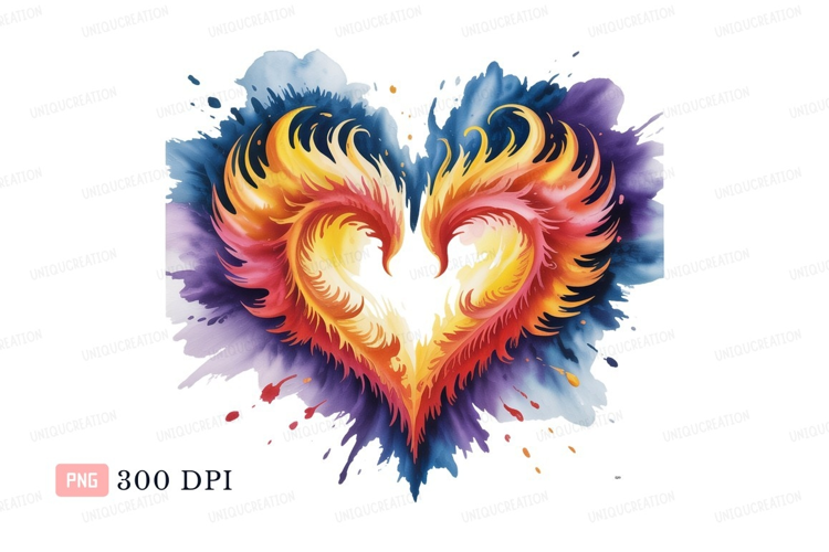 Fiery heart shape with colorful splash fire phoenix example image 1