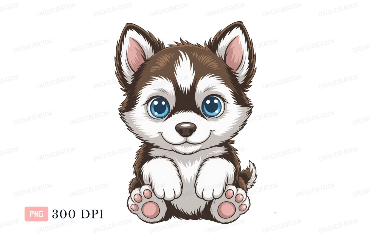 Cartoon Animal Cute Brown White Pet Puppy Dog Canine Husky