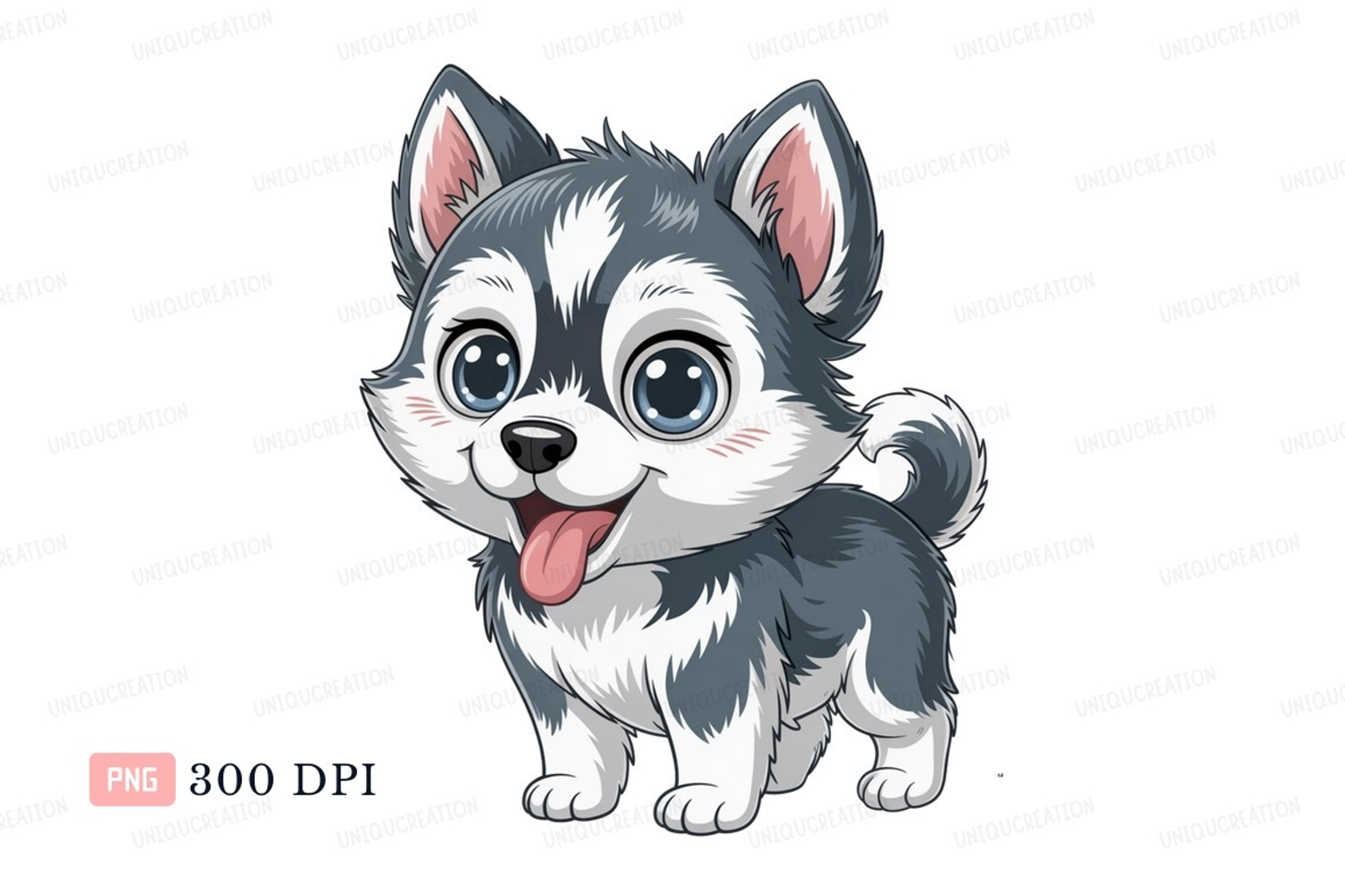 Illustration Cartoon Animal Playful Cute Pet Puppy Dog Canine Husky