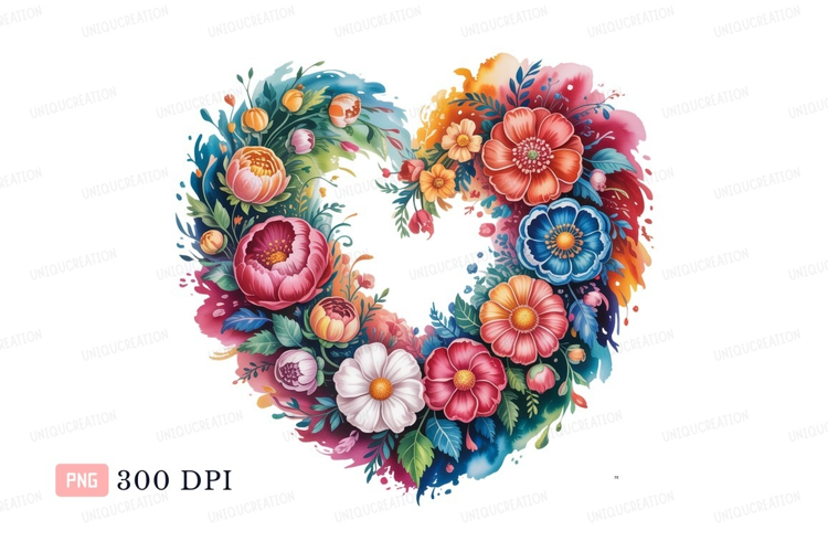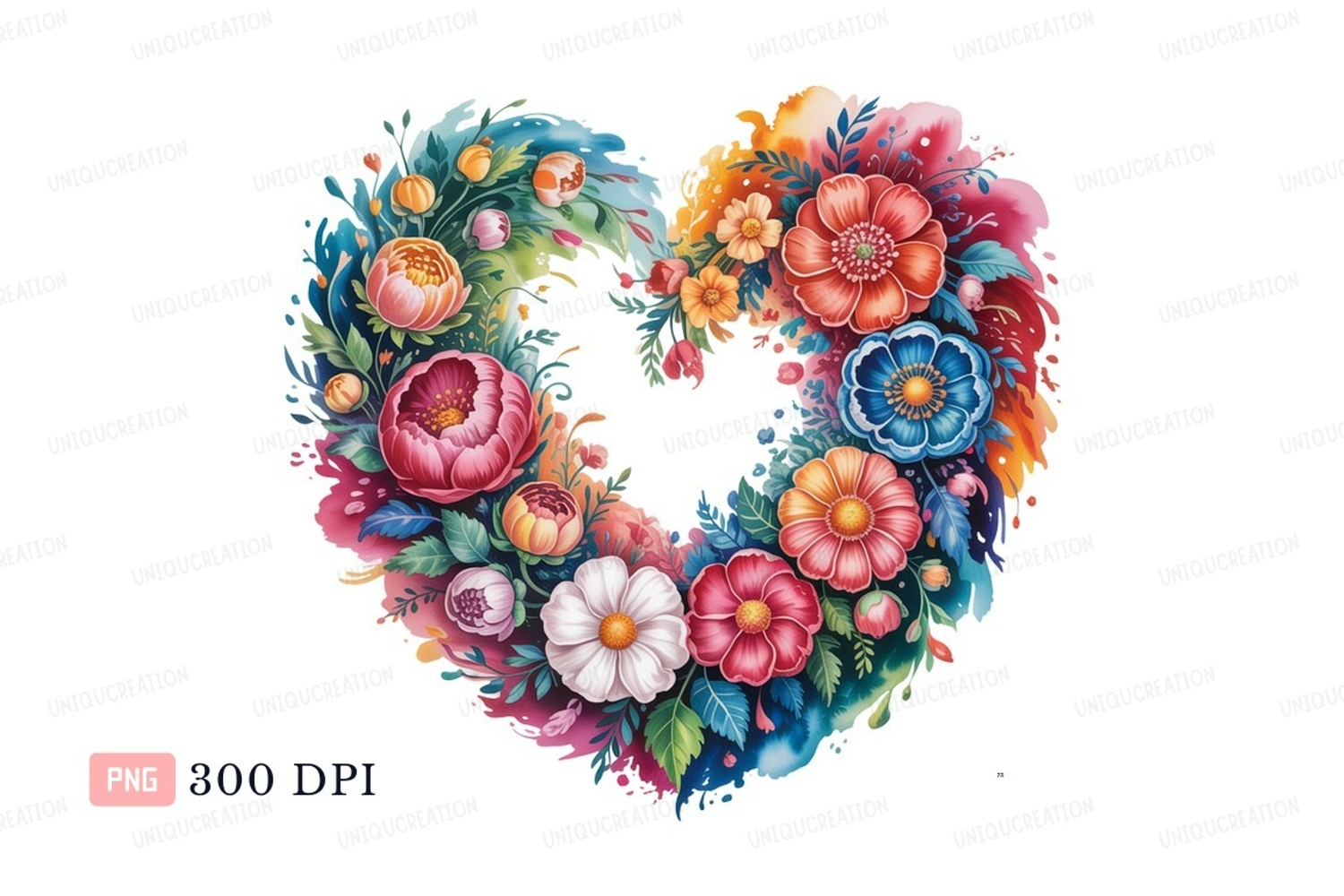 Similar Design Products to Heart shaped floral wreath watercolor colorful