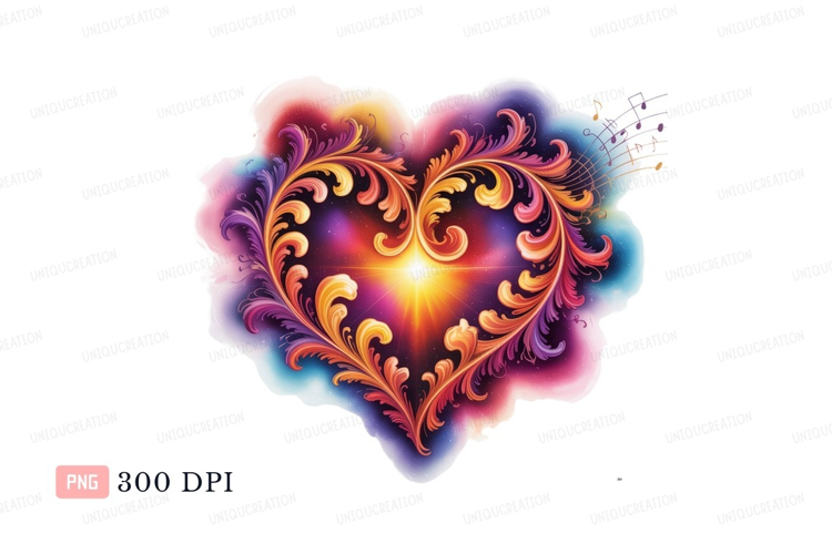 Ornate Heart With Musical Notes swirls flourish example image 1