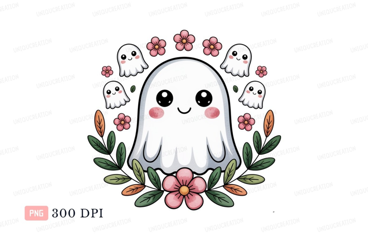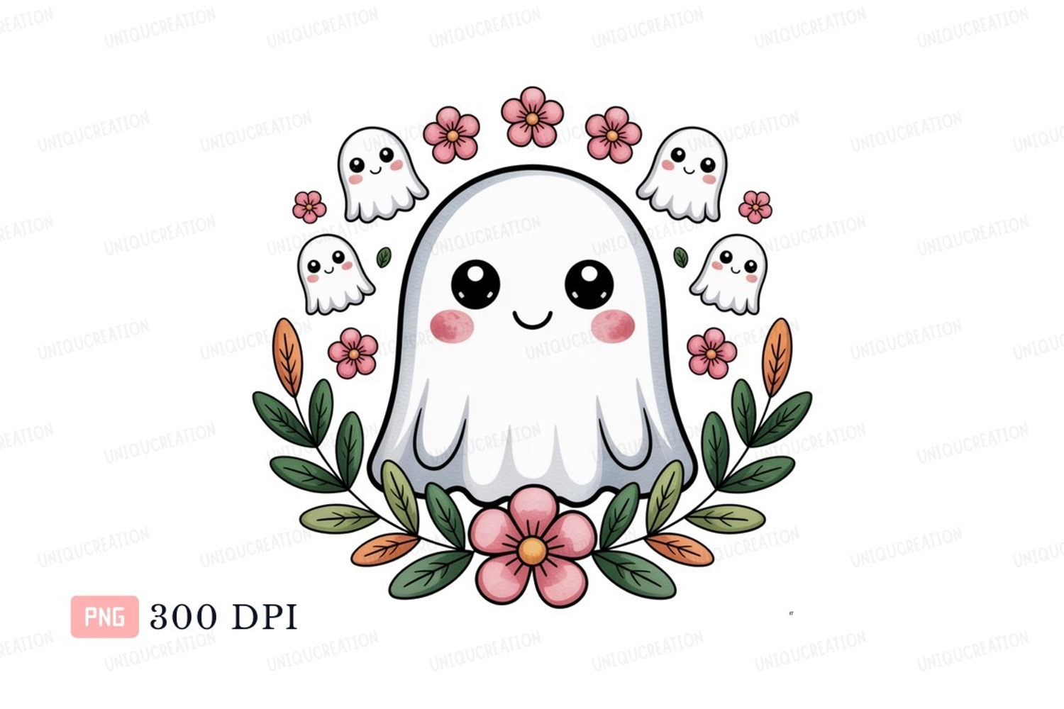 Cute ghosts surrounded by flowers halloween floral example image 1