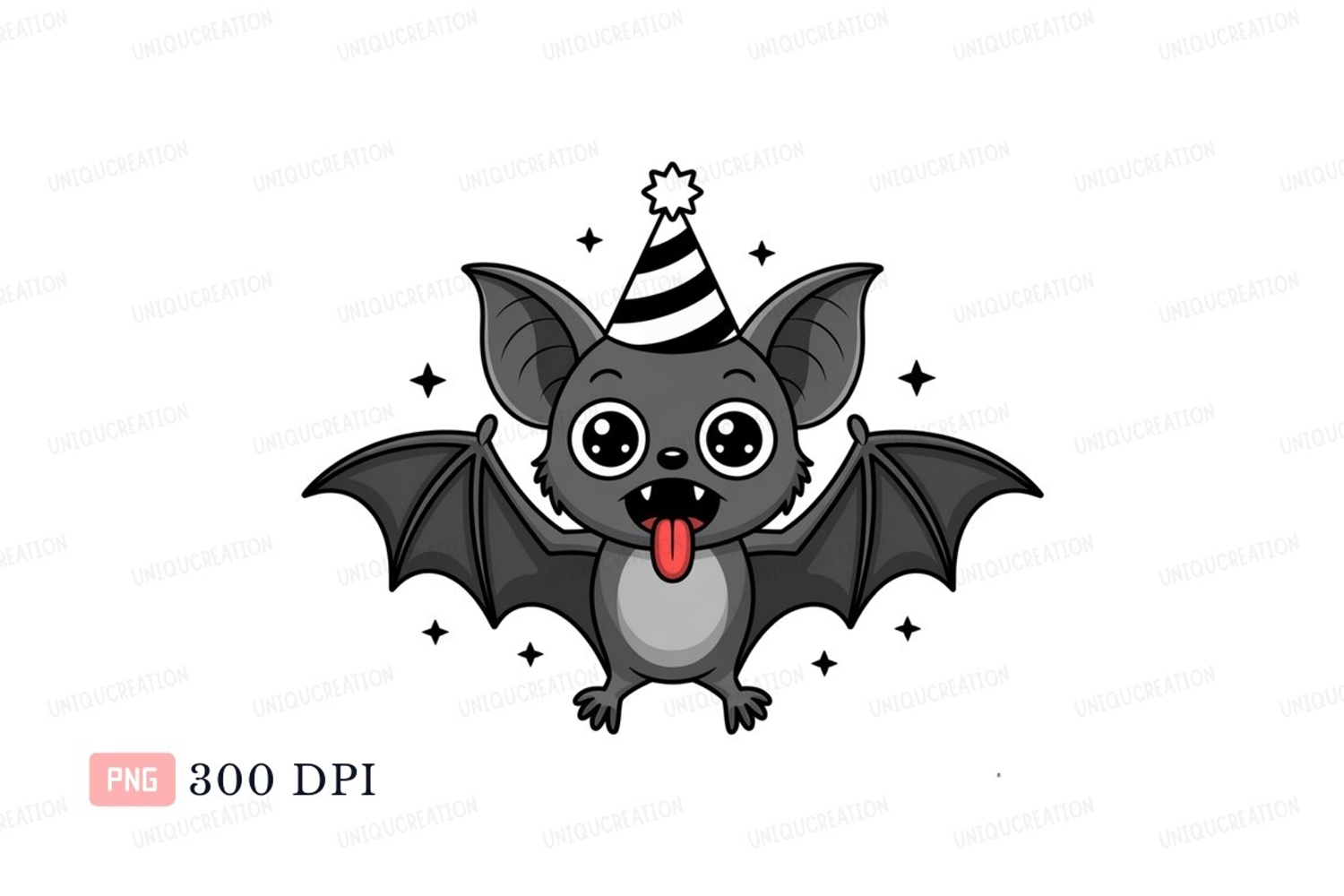 Cartoon Black Cute Bat Hat White Gray Eyes Wings Tongue