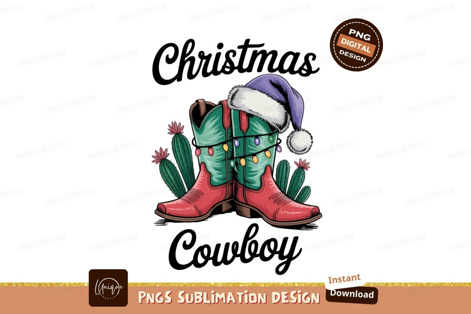 Similar Design Products to Festive cowboy boots with cactus and santa hat image
